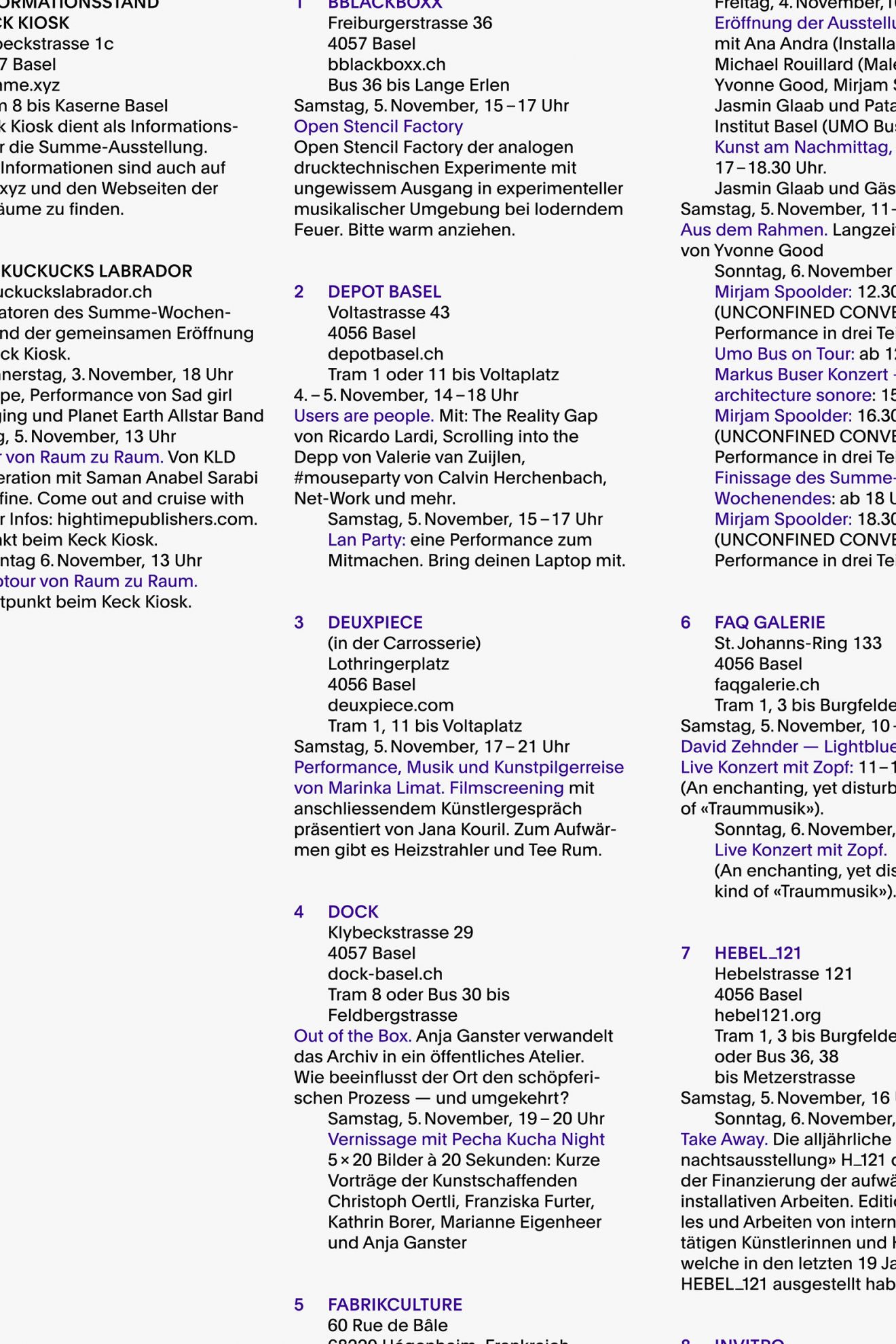Die Summe ist ein seit 2015 jährlich stattfindendes Ausstellungsprojekt verschiedener unabhängiger Projekträume aus dem Raum Basel, initiiert und organisiert vom Projektraum Dr. Kuckucks Labrador.